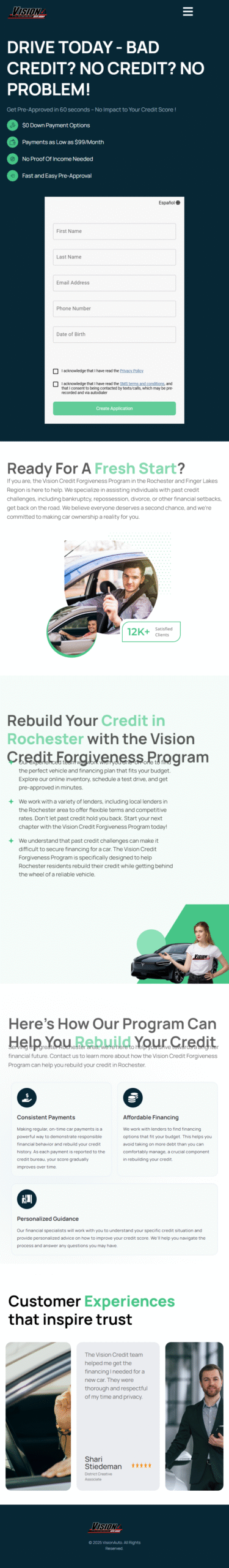 A car financing and credit rebuilding service for individuals with poor or no credit.